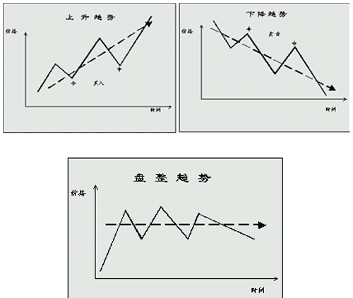趨勢(shì)反映的是市場(chǎng)匯價(jià)變動(dòng)的大致方向。上升趨勢(shì)的圖形反映出匯價(jià)不斷創(chuàng)高,在升勢(shì)中的短暫回落,往往成為買盤入市的良機(jī),若升勢(shì)持續(xù)時(shí)間較長(zhǎng)而且一浪高過(guò)一浪,就成為“牛市”。匯市有強(qiáng)烈看漲情緒,稱為“牛市正旺”。下跌趨勢(shì)的圖形反映匯價(jià)不斷推低,跌勢(shì)中的短暫回升,往往成為賣盤入市的良機(jī)。跌勢(shì)持續(xù)時(shí)間長(zhǎng)而且一浪低過(guò)一浪,就成為“熊市”。匯價(jià)強(qiáng)烈看跌時(shí),稱為“熊市籠罩”。在經(jīng)濟(jì)數(shù)據(jù)或重要新聞公布前和周末,因?yàn)橥顿Y者擔(dān)心匯市突變和周末假期,多數(shù)平倉(cāng)觀望,市場(chǎng)交投淡靜,匯價(jià)波動(dòng)極小。因?yàn)槿狈M(jìn)一步方向,匯價(jià)在較長(zhǎng)一段時(shí)間在一定幅度內(nèi)徘徊,稱為“牛皮市”。在這種情況下,等待觀望通常是最明智的。當(dāng)匯價(jià)沖破水平趨勢(shì)的上限或下限,后市均可能勁升或勁跌。